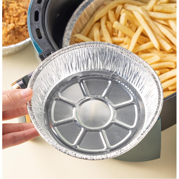 Các khay nhôm thường được ghi dung tích theo ml (ví dụ: 400ml, 700ml, 1000ml). Khi chọn mua, bạn nên cân nhắc kích thước của nồi chiên không dầu hoặc lò nướng của mình để đảm bảo khay đặt vừa vặn, không khí nóng vẫn có thể lưu thông xung quanh.