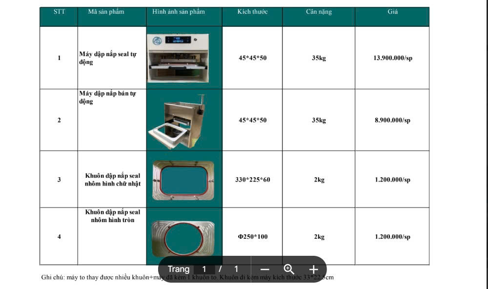 Bảng Báo Giá Máy Ép Seal Khay Nhôm